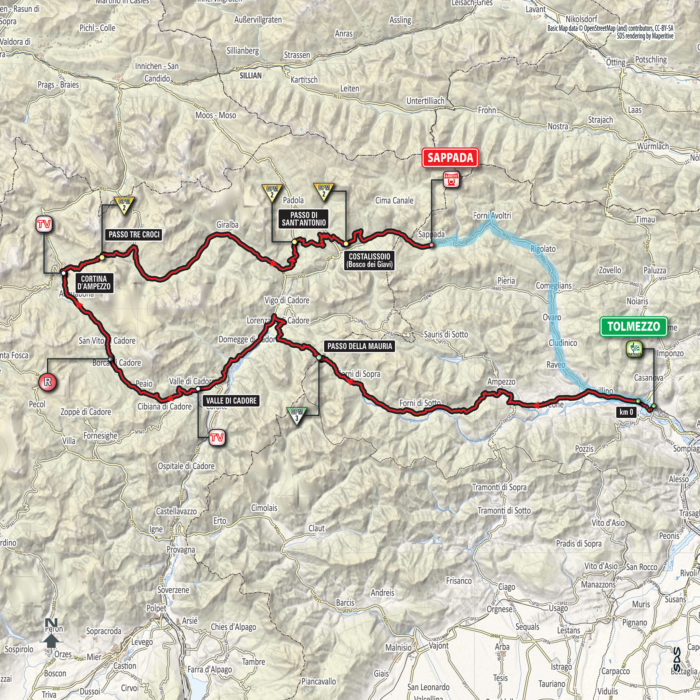 La dernière montée jusqu’à Sappada n’est pas répertoriée, mais elle peut aussi faire la différence. Trois kilomètres à 6,6 % de moyenne, cela annonce tout de même une difficile conclusion après plus de 170 kilomètres dans les Dolomites.