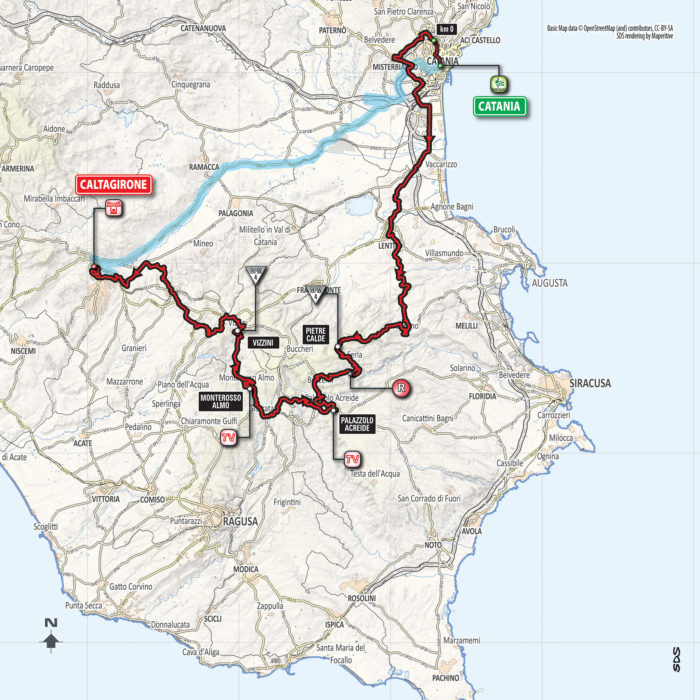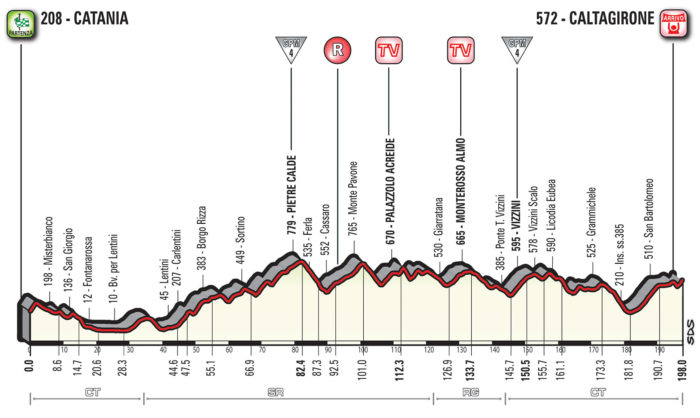 Retour en Italie pour le peloton du Giro. En Sicile, le peloton retrouvera des routes sinueuses et vallonnées. Dans la nature sicilienne, il n’y aura pas un mètre de plat et même si deux côtes seulement sont répertoriées par l’organisation, les ascensions seront nombreuses jusque dans le final. Les puncheurs devraient ainsi être à la fête sur cette première étape pouvant créer quelques écarts au classement général.