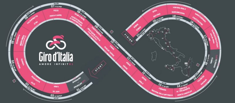 La 101e édition du Tour d’Italie démarre ce vendredi de Jérusalem, en Israël, pour trois semaines d’une épreuve qui fera la part belle aux grimpeurs. Entre les trois étapes israéliennes finalement confirmées malgré les récentes tensions au Proche-Orient et le final dans les Alpes, découvrez le programme complet des 21 étapes de la course au maillot rose, prévues du 4 au 27 mai.