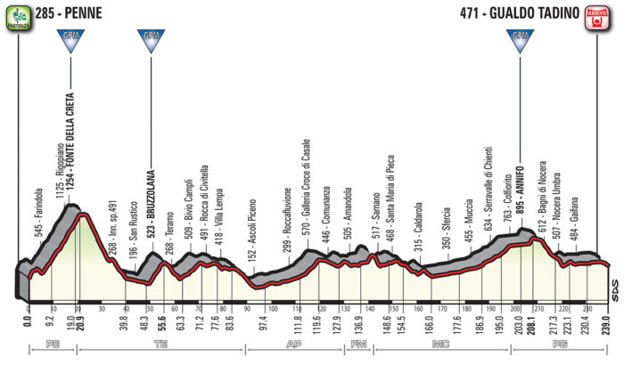 Mardi 15 mai – 10e étape : Penne > Gualdo Tadino (239 km)