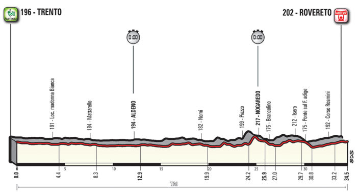 Mardi 22 mai – 16e étape : Trento > Rovereto (34.5 km, CLM individuel)
