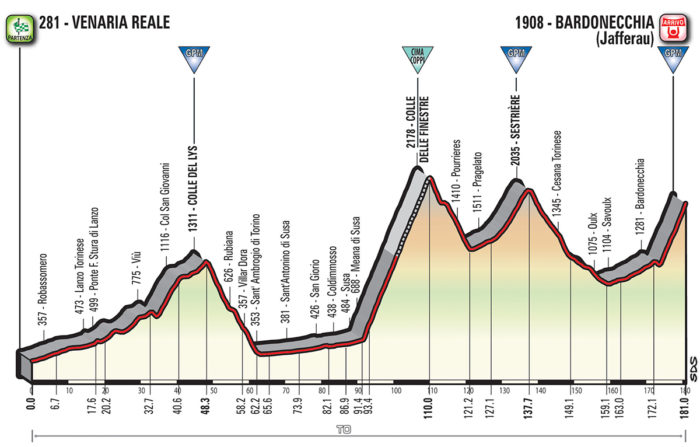 Vendredi 25 mai – 19e étape : Venaria Reale > Bardonecchia (181 km)