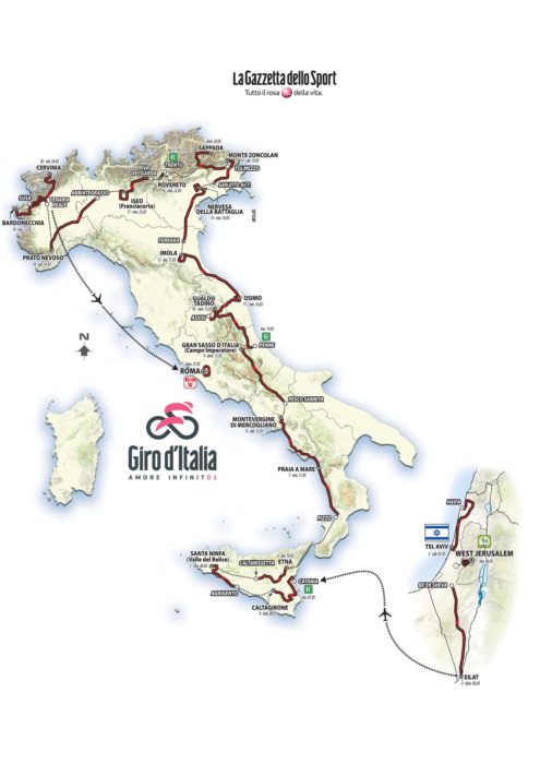 Après la révélation d’un départ exceptionnel en Israël, pour trois étapes de gala, dont un contre-la-montre dans les rues de Jérusalem, il restait encore à connaître les contours d’un Tour d’Italie qui s’annonçait avant tout « symbolique », avec ce départ depuis une ville au caractère religieux fort et une arrivée proposée à Rome, aux abords du Vatican. Et autour de ces deux cités ? Finalement beaucoup de haute montagne.
