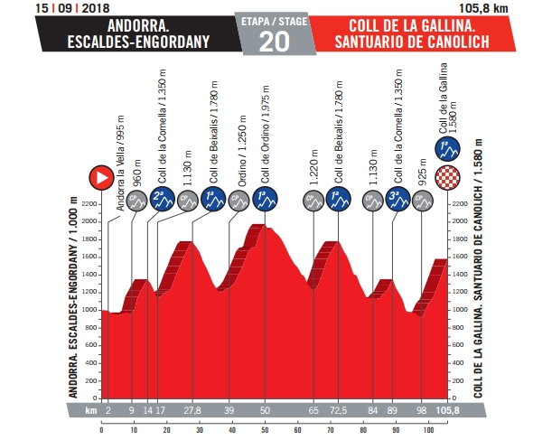 20e étape – Samedi 15 septembre : Andorre/Escaldes-Engordany > Coll de la Gallina/Sanctuaire de Canolich (105,8 km)
