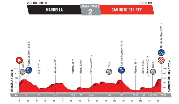 2e étape – Dimanche 26 août : Marbella > Caminito del Rey (163,9 km)