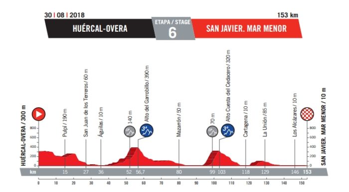 6e étape – Jeudi 30 août : Huércal-Overa > San Javier/Mar Menor (153 km)