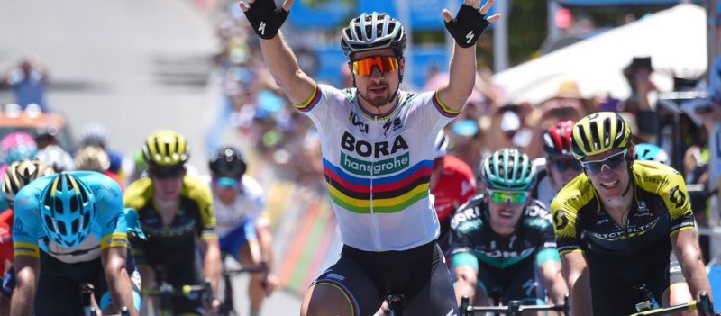 Vainqueur du critérium pré-Tour Down Under dans les rues d’Adélaïde, le champion du monde Peter Sagan était attendu comme le grand favori sur l’ensemble des sprints massifs de l’épreuve australienne. Pourtant, le Slovaque a dû patienter jusqu’à la quatrième étape pour lever les bras sur une véritable course pro. Sagan a surtout dû faire parler sa puissance sur une étape plus corsée, au terme d’une course animée, avant de triompher au sprint. Le champion du monde n’a donc pas perdu grand-chose de ses qualités de puncheur rapide, et peut se reposer sur ses lauriers en vue du printemps. Peter Sagan va désormais prendre une pause auprès de son épouse et de son fils, né cet automne, avant de reprendre la compétition sur le Strade Bianche, en Toscane, le 3 mars prochain. Pour une fois, il fera l’impasse sur l’ouverture de la saison belge, le 24 février, au Circuit Het Nieuwsblad. Au grand dam des spécialistes des Flandriennes qui espéraient une première joute face au Slovaque.
