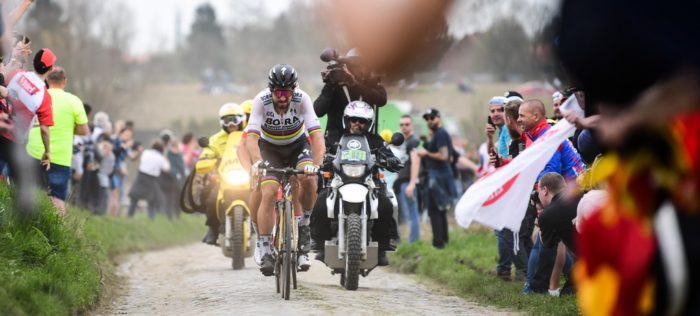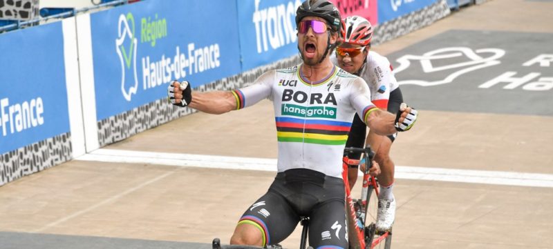 Avec 25 victoires et sept (semi-)classiques du Nord en poche, la Quick Step semblait imbattable à l’aube de cette 116e édition de Paris-Roubaix. Et pourtant, dans des conditions plus favorables qu’annoncé, les hommes de Patrick Lefevere ont coincé, s’échinant à lancer des offensives bien trop loin du vélodrome. Incapables de pousser sur les pédales au moment de l’accélération de Peter Sagan (Bora-Hansgrohe). Le champion du monde ne s’est donc pas fait prier et a pris son envol à 55 kilomètres de l’arrivée pour ne voir que le champion de Suisse Silvan Dillier (Ag2r-La Mondiale) dans sa roue. Le sprint était joué d’avance : le Slovaque n’a pas manqué cette nouvelle chance de remporter Paris-Roubaix, pour un sacre d’anthologie sous le maillot arc-en-ciel.