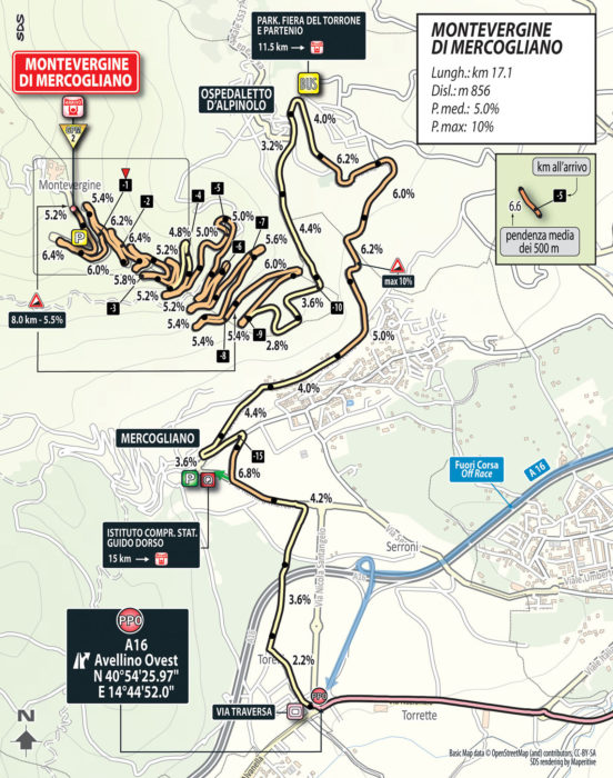 Km 209,0 – 2e cat. : Montevergine di Mercogliano (17,1 km à 5%)