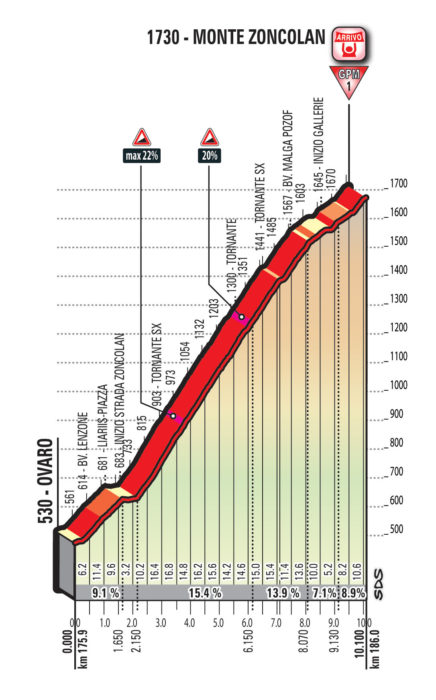 Km 186,0 – 1re cat. : Monte Zoncolan (10,1 km à 11,9%)