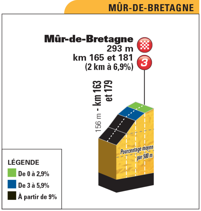 Km 181 – 3e cat. : Mûr-de-Bretagne (2 km à 6,9%)