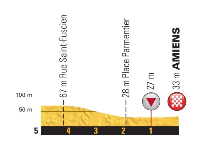 Les routes dégagées de Picardie sont en effet difficiles à manier si des bordures se forment dans le peloton. Du côté d’Amiens, les sprinters qui veulent jouer la victoire en groupe devront tout de même être prudents. Ils vont devoir faire le tour de la ville et enchaîner les virages, jusqu’à 600 mètres de l’arrivée. Se placer sera donc le plus important dans le final qui s’annonce rapide. Ce n’est d’ailleurs pas pour rien que Mario Cipollini, en 1999, et André Greipel, en 2015, se sont imposés à Amiens.
