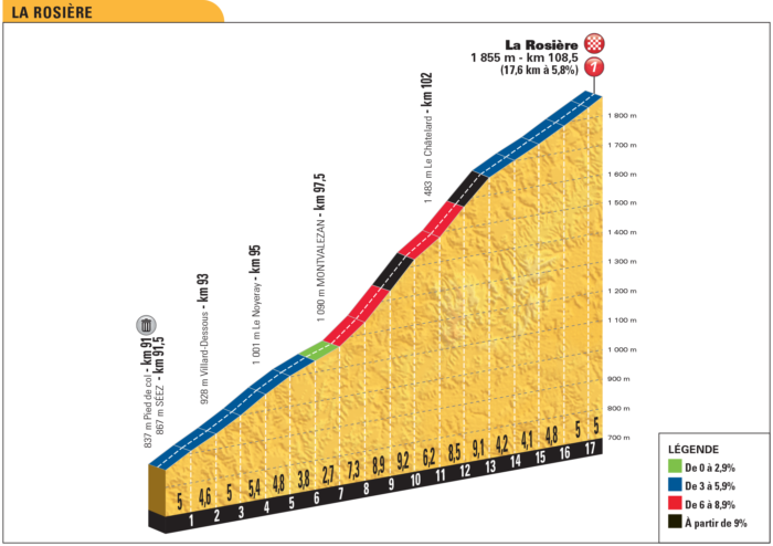 Km 108,5 – 1re cat. : La Rosière (17,6 km à 5,8%)