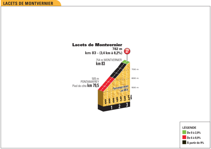 Km 83 – 2e cat. : Lacets de Montvernier (3,4 km à 8,2%)