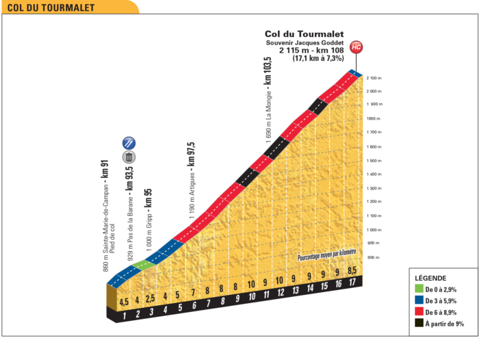 Km 108 – Hors-cat. : Col du Tourmalet (17,1 km à 7,3%)