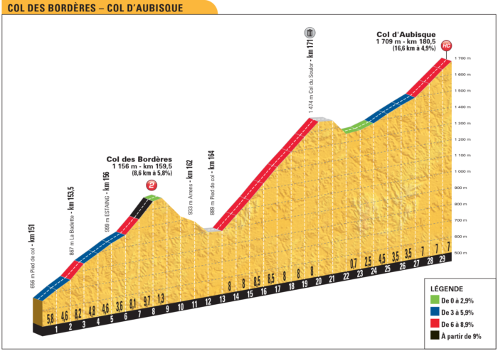 Km 159,5 – 2e cat. : Col des Bordères (8,6 km à 5,8%)