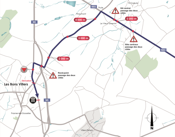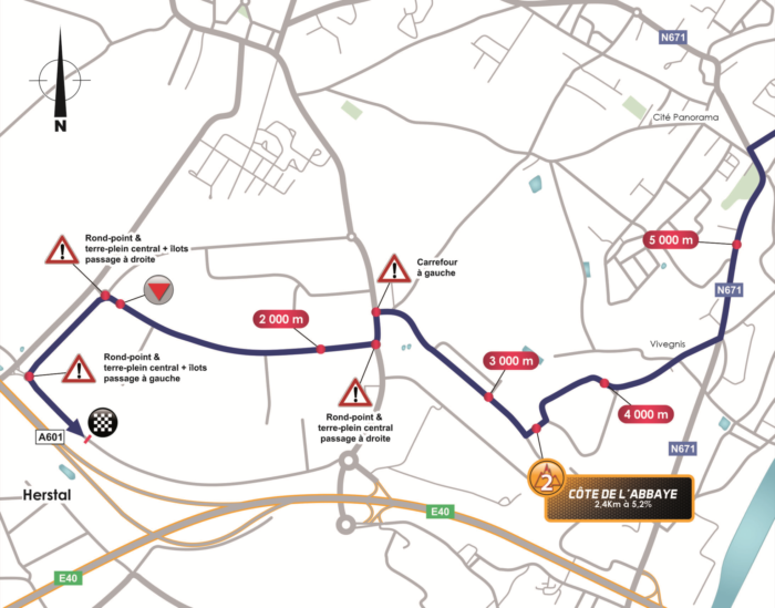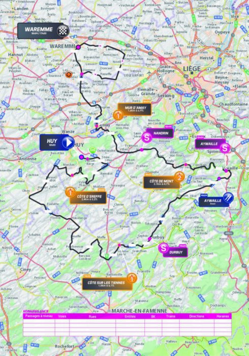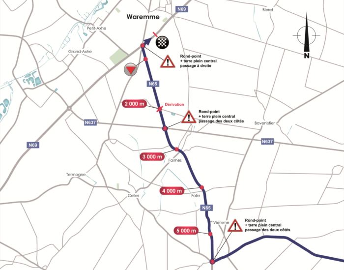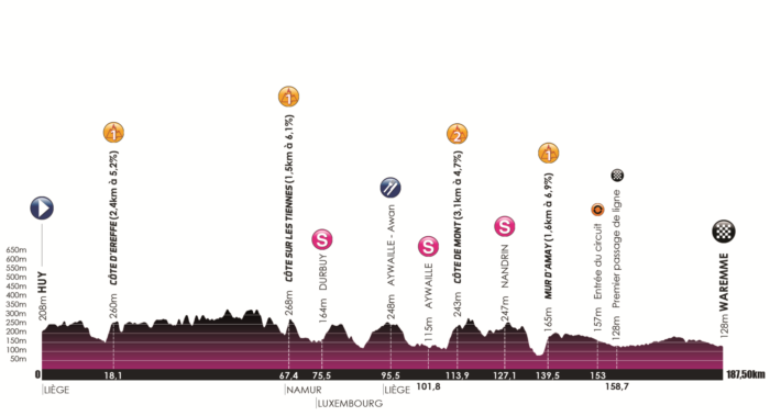 La cinquième et dernière étape entre Huy et Waremme sera par contre plus aisée pour les sprinters malgré les quelques difficultés que les amateurs de la Flèche Wallonne connaissent bien comme la côte d’Ereffe et le Mur d’Amay. La journée se conclura en effet dans les plateaux de Hesbaye, où le vent pourrait jouer un rôle s’il se veut plus virulent. Le circuit final ne propose en tout cas pas de grande difficulté mais si un emballage massif se confirme à Waremme, le peloton devra surtout faire attention au dernier virage dangereux situé à moins de 500 mètres de la ligne.