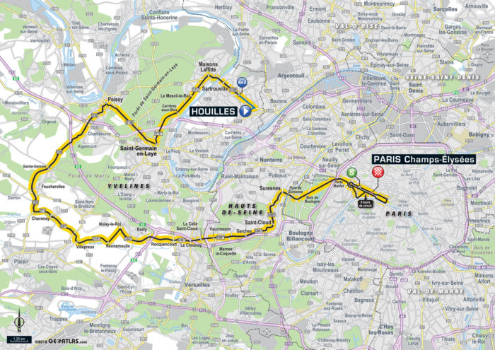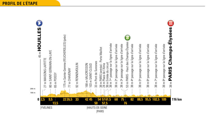Vers les Champs-Élysées, aucune difficulté n’est à signaler, le peloton pourra donc siroter son champagne en toute tranquillité jusqu’à l’entrée dans la capitale. Le circuit final sur les Champs-Élysées sera toutefois toujours intéressant à regarder, vu le dernier choc attendu entre les sprinters et les attaques surprenantes qui peuvent arriver sur les pavés de la plus belle avenue du monde.