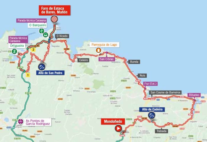Si Fernando Escartin, en charge du parcours de cette 73e édition du Tour d’Espagne, affirme que cette étape sera « de moyenne montagne » sur un « territoire très accidenté », cette 12e étape devrait tout de même profiter aux sprinters si les équipiers de ces derniers parviennent à assurer le rythme en tête du peloton. Les routes seront, il est vrai, plus serrées dans les derniers kilomètres et le final sera particulièrement sinueux, mais le dernier kilomètre s’annonce parfait pour la préparation d’un emballage massif. Cela ira donc très vite dans le cap d’Estaca de Bares, devant le phare vieux de plus d’un siècle. Ce cap marque d’ailleurs la séparation nette entre la mer Cantabrique et l’océan Atlantique, et sur cette Vuelta, il signifiera la scission entre les étapes pour sprinters et celles pour grimpeurs lors de cette deuxième semaine de course.