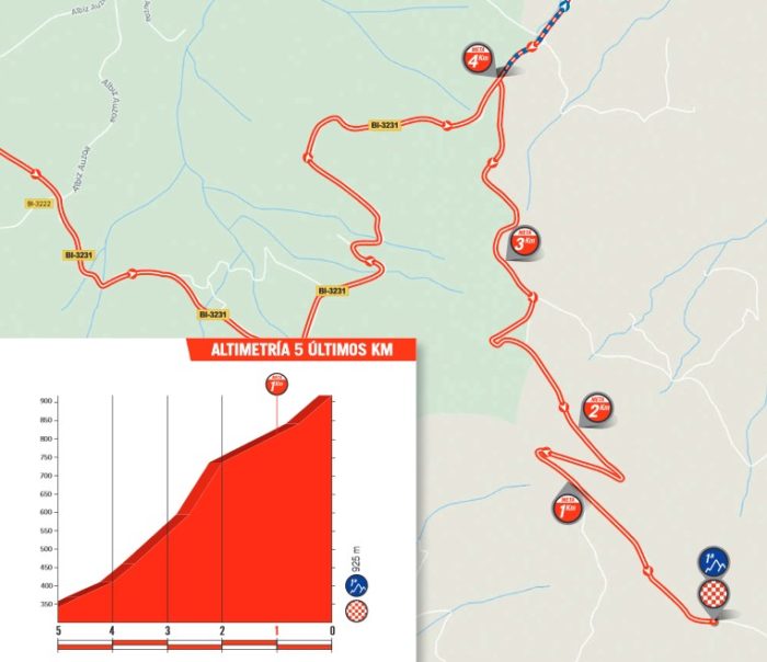 Dans les 40 derniers kilomètres, le peloton va enchaîner quatre ascensions qui risquent de réduire le peloton à peau de chagrin d’ici les derniers kilomètres. Si l’Alto de Santa Eufemia, et l’Alto de Gontzegaraine, n’offriront pas de pourcentages à deux chiffres, le juge de paix de cette journée sera bien l’Alto del Balcón de Bizkaia, mieux connu sous le nom de Monte Oiz par les locaux. La pente moyenne fait déjà peur et rappelle les premiers murs déjà escaladés sur cette Vuelta : 7,3 kilomètres à près de 10% de moyenne. Mais ce sont surtout les quatre derniers kilomètres qui prévoient une pente de plus de 11% de moyenne avec des passages à 24%… Clairement, le classement général va encore subir quelques changements après cette étape, vu la fatigue accumulée au fil de ces deux premières semaines de course.