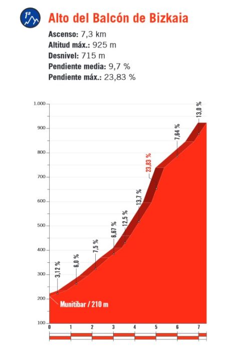 Km 157 – 1re cat. : Alto del Balcón de Bizkaia II (7,3 km à 9,7%)