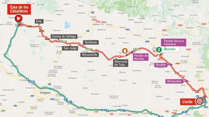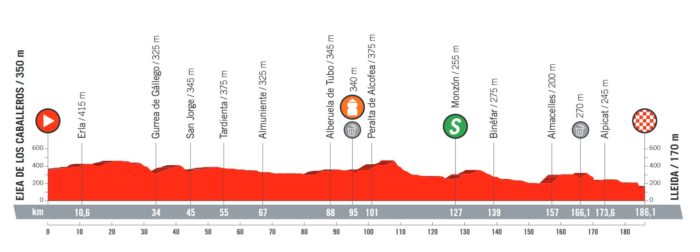 Entre la province d’Aragon et la Catalogne, les sprinters vont enfin retrouver un terrain à leur convenance avec une véritable étape de plaine, sans aucune difficulté, si ce n’est le vent qui risque de souffler en rafales et de côté dans le final. Les bordures pourraient donc marquer les derniers kilomètres, les candidats au classement général devront rester attentifs. Le sprint massif annoncé sera également « technique », avec une descente abrupte à deux kilomètres de l’arrivée avant un dernier kilomètre en faux-plat montant qui favorisera les coureurs puissants.