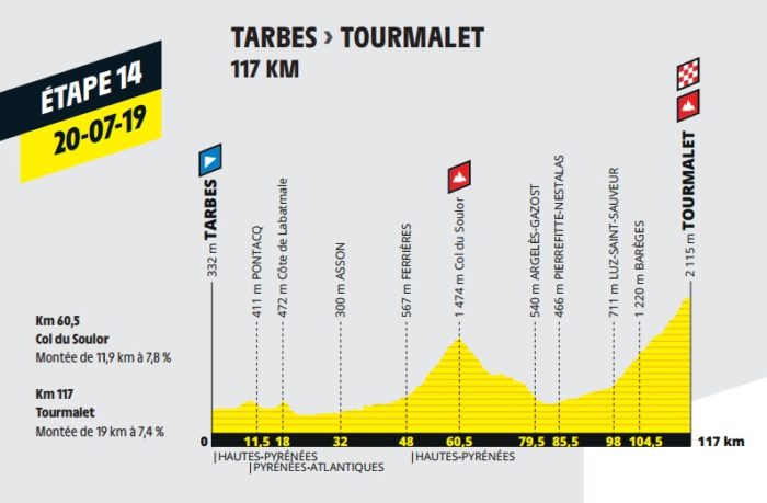 14e étape – Samedi 20 juillet 2019 : Tarbes > Tourmalet (117 km)