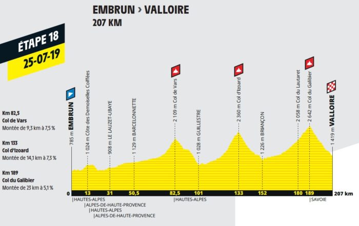 18e étape – Jeudi 25 juillet 2019 : Embrun > Valloire (207 km)