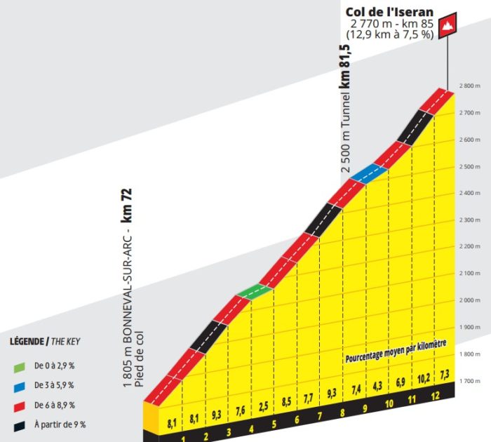 La 19e étape partira de Saint-Jean-de-Maurienne et passera par quelques routes inédites : pas question de prendre les larges routes de la vallée de la Maurienne, la caravane passera par la Montée d’Aussois pour affronter un versant plus discret du col de la Madeleine, avant une nouvelle montée sur le col de l’Iseran, qui culmine à plus de 2.700 mètres d’altitude. Les coureurs affronteront ensuite la montée vers la station de Tignes, au terme de seulement 123 kilomètres de course.