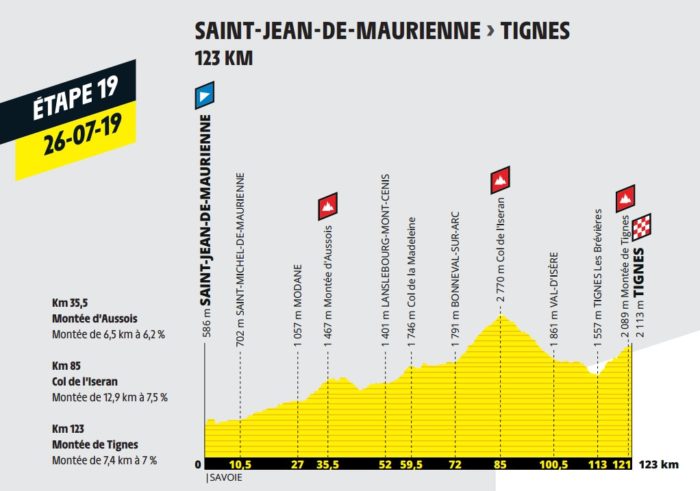 19e étape – Vendredi 26 juillet 2019 : Saint-Jean-de-Maurienne > Tignes (123 km)