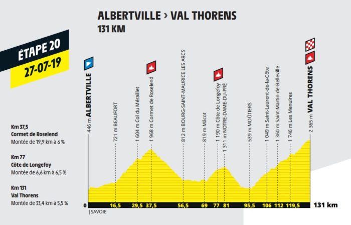 20e étape – Samedi 27 juillet 2019 : Albertville > Val Thorens (131 km)