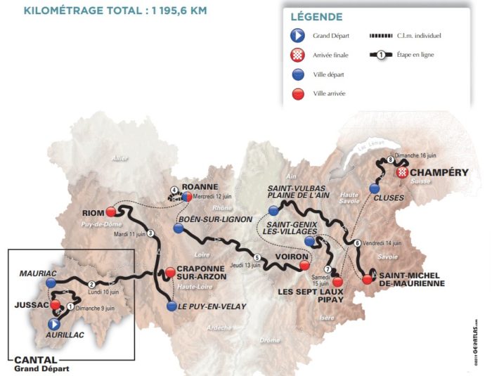 Les étapes de la 71e édition du Critérium du Dauphiné :