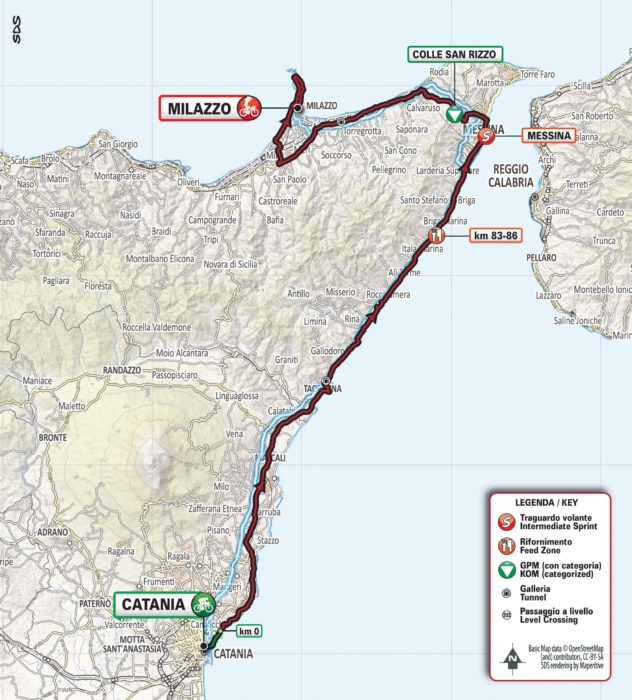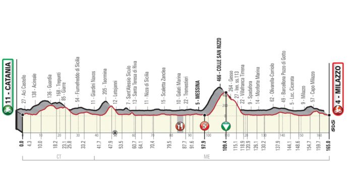 1re étape – Mercredi 3 avril : Catane > Milazzo (165 km)