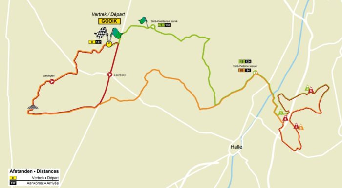 Chez les dames, le circuit a également connu quelques modifications autour de Gooik. Le peloton féminin s’écartera en effet de la cité brabançonne pour un petit tour sur le circuit masculin autour de Lot et Alsemberg, avec deux passages sur le Bruine Put et le Menisberg pour bien chauffer les jambes. Cela risque d’être toutefois insuffisant pour faire sauter les éventuelles sprinteuses désireuses de jouer la gagne sur ce tracé particulièrement plat. Car sur le circuit final de Gooik, à couvrir à trois reprises (et demi), seul un secteur pavé viendra perturber la dynamique du peloton mais sinon, les faux-plats sont rares pour creuser l’écart avec le peloton.