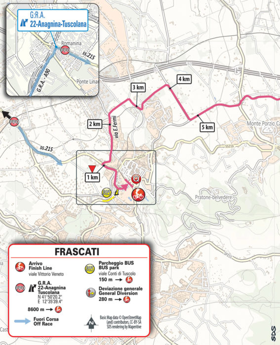 Cette très longue étape ne sera pas la plus éreintante, mais elle offrira un final explosif, avec une longue montée vers Frascati.