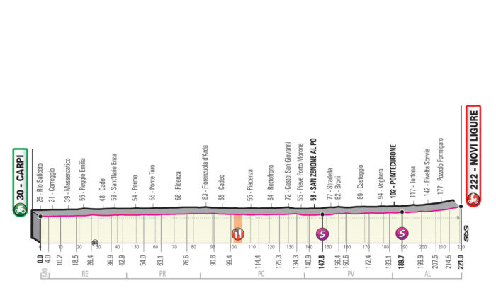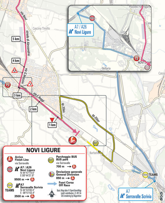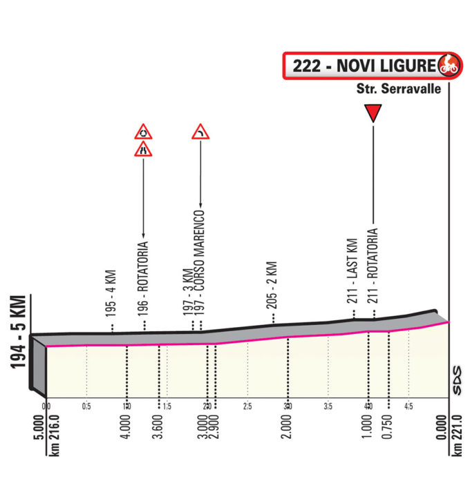 Dans la vallée du Pô, les coureurs vont repasser par des routes traditionnelles de Milan-Sanremo notamment, avant une légère remontée vers la cité de Novi Ligure, connue pour son musée du vélo et dédié en partie à l’enfant de la région, Fausto Coppi. Les trois derniers kilomètres seront quasiment en ligne droite avec un léger faux-plat montant que le peloton ne devrait même pas ressentir dans les pédales.