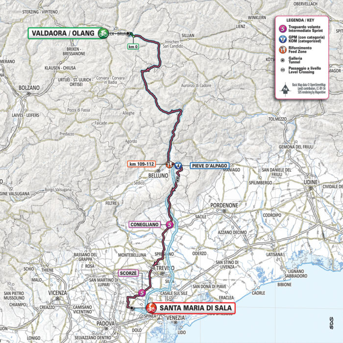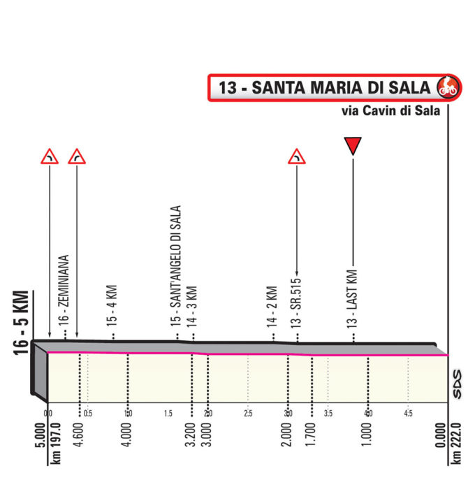 Les sprinters qui ont résisté au copieux menu montagneux de cette dernière semaine pourront se réjouir de cette longue 18e étape qui se résume en une longue descente vers Santa Maria di Sala, aux aux abords de Venise.