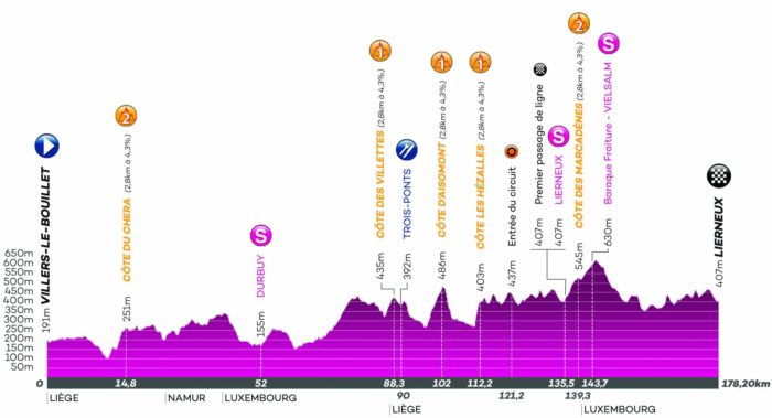 Le peloton s’offrira un voyage dans les Ardennes pour la troisième étape dans les hauteurs, avec notamment un passage sur le Signal de Botrange et devant le barrage de la Gileppe avant un circuit local encore une fois pour puncheurs, avec notamment la côte de la rue de la Papeterie (jusqu’à 12%) dont le sommet est situé à 2500 mètres de l’arrivée à Verviers. Pour la 4e étape, encore une fois, les organismes seront mis à rude épreuve avec une étape proposant quatre côte répertoriées et bien plus de collines qui feront plaisir aux spécialistes de l’offensive. La finale en descente vers Lierneux peut toutefois profiter aux équipes organisées.