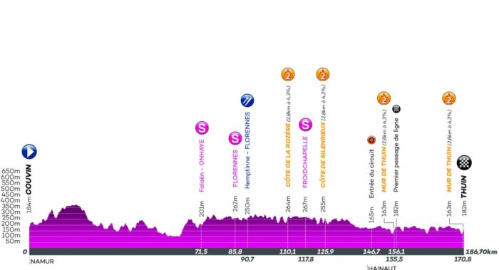Enfin, le classement général se jouera sur la cinquième et dernière étape, presque devenue traditionnelle sur le Tour de Wallonie, jusqu’à Thuin. La cité hennuyère est en effet un terrain idéal pour clôturer une telle épreuve par étapes, avec son célèbre mur pavé qu’il faudra franchir à deux reprises avant l’arrivée à son sommet. Le mur de Thuin n’est pas aussi raide qu’à Huy mais il propose des petites rues pavées et sinueuses, ce qui permet aux coureurs les plus puissants et avertis de faire la différence. La lutte pour le classement général sera donc intense jusqu’au dernier mètre sur cette 40e édition du Tour de Wallonie.