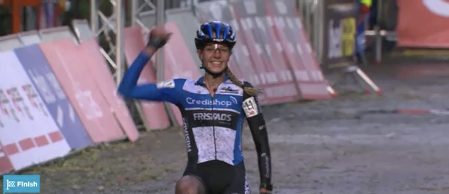 Sur la course féminine ouvrant le bal, la championne de Belgique Sanne Cant connaît un souci technique dès le départ tandis que la Néerlandaise Lucinda Brand est la meilleure lors des premiers hectomètres de l’épreuve avant d’être contrée par la Britannique Anna Kay. Sous le soleil mais sur un terrain rendu gras et boueux par la pluie, c’est au tour de la Néerlandaise Denise Betsema de prendre les commandes et de se détacher. Hélas pour elle une chute dans la descente de la principale difficulté du parcours, le Mont Henry, la retarde et permet à deux autres Néerlandaises de se rapprocher, Aniek van Alphen et Manon Bakker. Betsema boucle le premier tour en tête. Une nouvelle chute de cette dernière, cette fois dans la montée du Mont Henry, ainsi qu’un changement de vélo permettent à ses deux compatriotes de la rejoindre à hauteur du poste matériel. Le trio franchit la ligne d’arrivée détaché. Les deux premières Belges Sanne Cant et Laura Verdonschot sont déjà à 25 secondes.