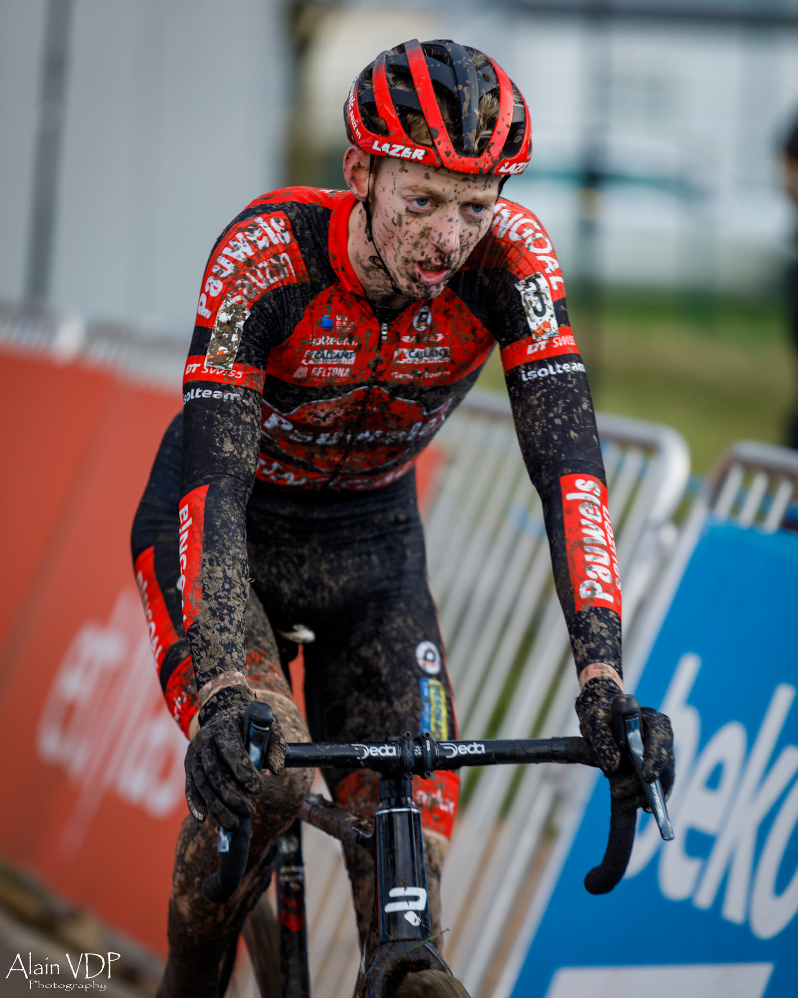 Sous le souffle d’Eole, il fallait éviter de partir trop vite sur ce circuit de Bredene, ce que le champion du monde Mathieu Van der Poel (Alpecin-Fenix) confirmait en partant avec prudence. Dans le premier tour, il suivait Toon Aerts (Telenet Baloise Lions), Michael Vanthourenhout (Pauwels Sauzen-Bingoal) et Gianni Vermeersch (Credishop-Fristads), avant de filer en duo avec l’ancien champion d’Europe au fil des passages boueux qui éliminaient coup sur coup Vermeersch et Vanthourenhout, victime d’un saut de chaîne dès le deuxième tour.