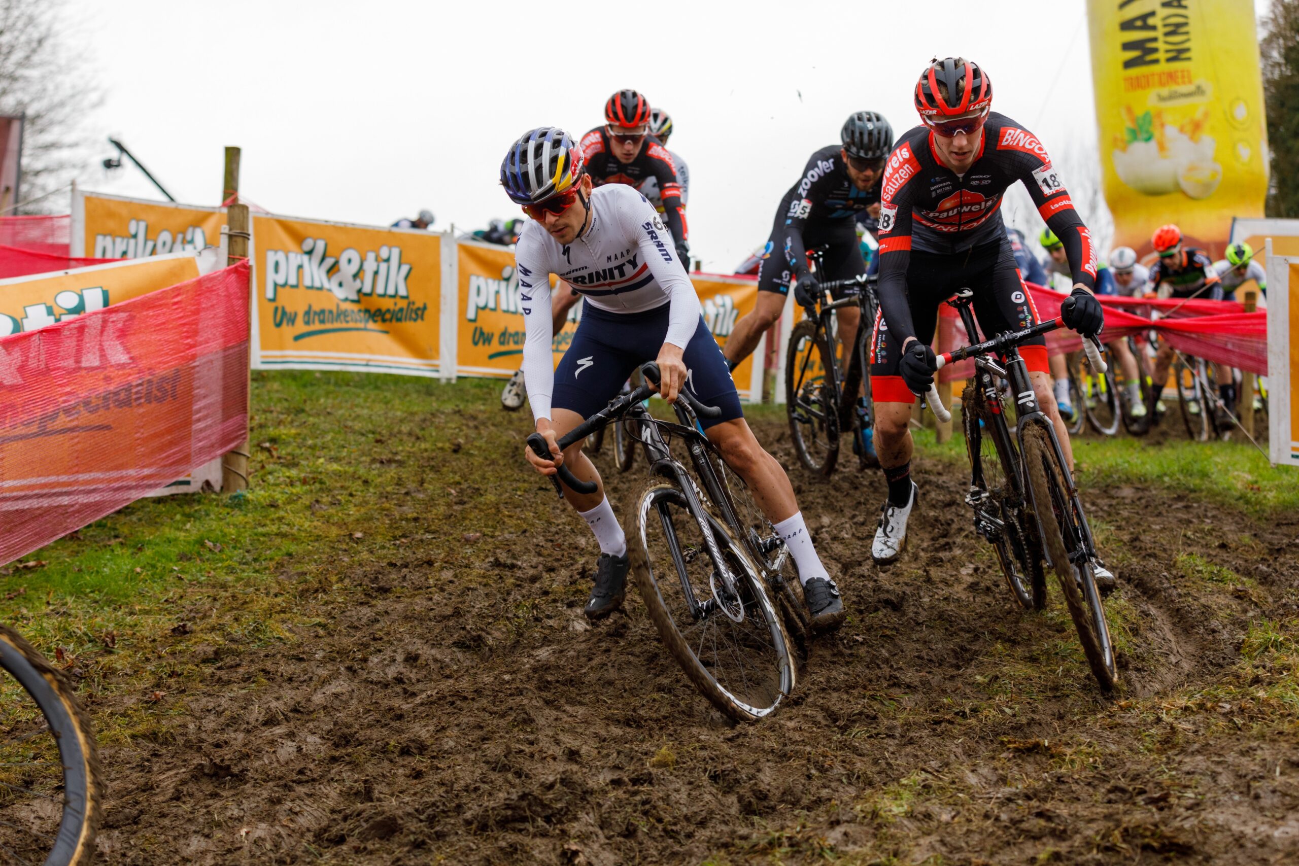 Dès les premières pentes du Ter Nood, le peloton masculin annonçait une course serrée. Mathieu Van der Poel (Alpecin-Fenix) faisait la meilleure impression au sommet, avec Toon Aerts (Baloise Trek Lions) à ses côtés, alors que Wout van Aert (Jumbo-Visma) reculait de quelques places avant de remonter au fil des descentes techniques, vers le centre d’Overijse. Ce sont ces passages délicats qui permettaient une nouvelle fois aux deux stars des labourés de prendre leurs distances : Van Aert et Van der Poel se retrouvaient isolés en tête, alors qu’Aerts, Tom Pidcock (Trinity Racing) et Michael Vanthourenhout (Pauwels Sauzen-Bingoal) ne jouaient plus qu’une place sur le podium.