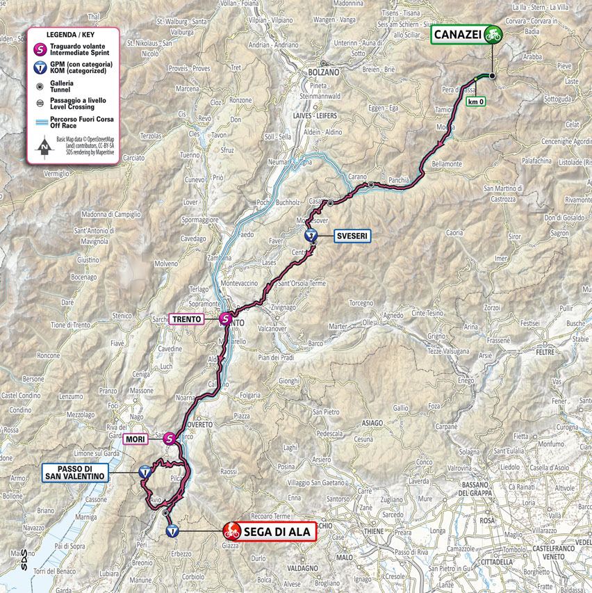 Après une journée de repos salvatrice, place à une nouvelle étape de haute montagne qui risque de bouleverser la course au maillot rose. La montée de Sveseri, avec sa section à 15%, servira d’apéritif pour les raidards qu’affrontera le peloton dans les 50 derniers kilomètres. Le Passo San Valentino sera idéal pour les appétits offensifs, avant la montée finale vers Sega di Ala, ou le Passo delle Fittanze pour les locaux. Cette ascension irrégulière avait été découverte sur le Tour du Trentin à l’époque, et propose de nombreux passages à plus de 10%, avec notamment 2,5 kilomètres à plus de 12% de moyenne avant le final moins abrupt. Les purs grimpeurs apprécieront…