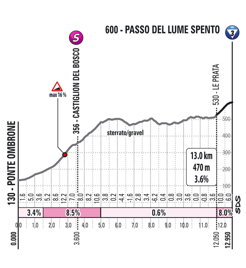 Km 158,2 – 3e cat. : Passo del Lume Spento (9,3 km à 4,6%)