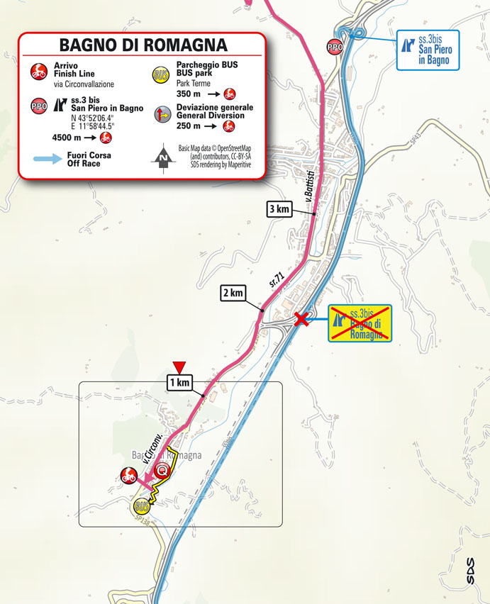 Arrivée : vers 17h14 sur la sr. 71 à Bagno di Romagna