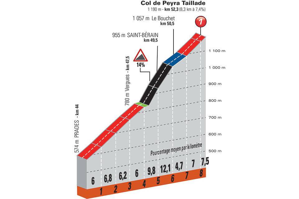 Km 52,3 – 1re cat. : Col de Peyra Taillade (8,3 km à 7,4% de moyenne)