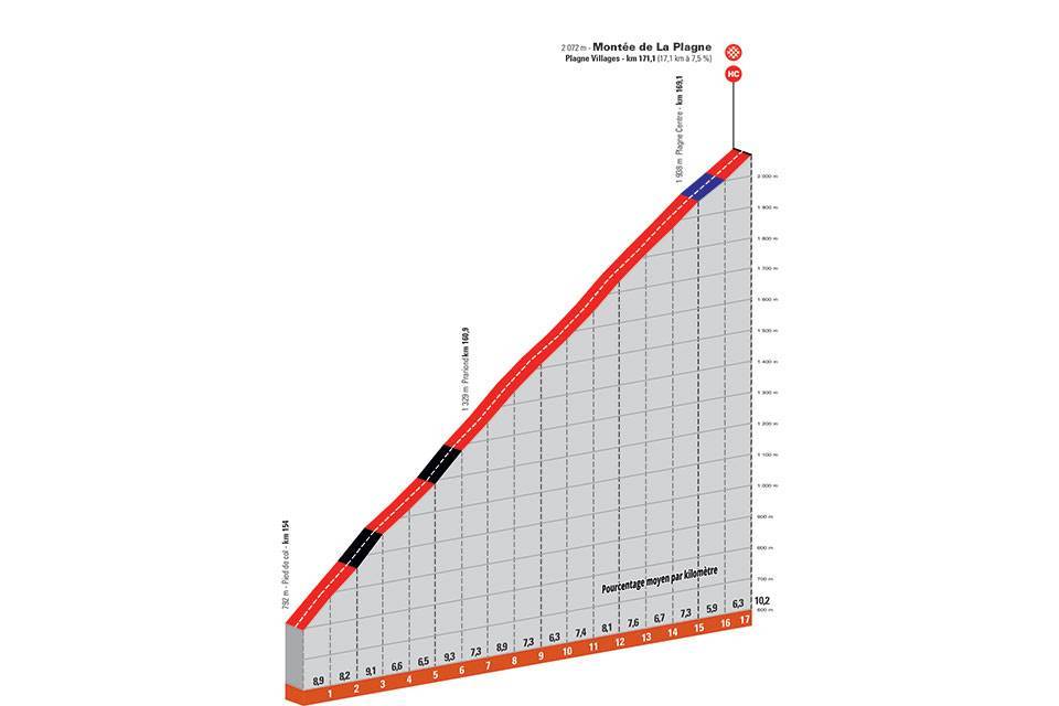Km 171,1 – Hors-cat. : La Plagne (17,1 km à 7,5%)