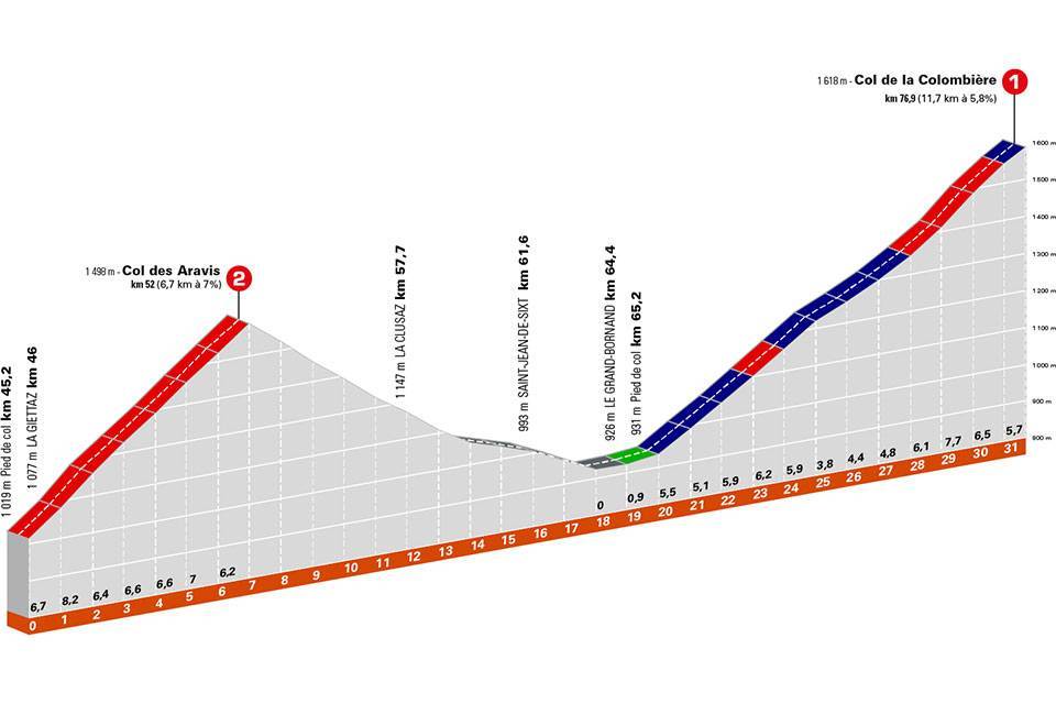 Le Dauphiné se conclut une nouvelle fois en Savoie et proposera le meilleur des cols de la région. Car les coureurs vont enchaîner près de 4 000 mètres de dénivelé sur cette courte étape de moins de 150 kilomètres. Le peloton devra enchaîner six ascensions répertoriées, et c’est sans compter sur la montée finale vers la station des Gets. Les points chauds seront le col des Aravis (7% de moyenne sur près de 7 kilomètres), après 50 kilomètres de course, le col de la Colomière (un long col de près de 12 kilomètres), et le col de Joux-Plane, l’ascension qui décidera du maillot jaune avec ses 8,5% de moyenne sur près de 12 bornes, dont les 4 derniers kilomètres seront les plus raides.