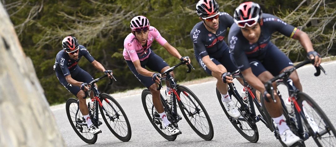 Enchaînant les stages par la suite, le Colombien a rapidement démontré sa voracité, attaquant dès la première arrivée au sommet, à San Giacomo. Avant d’attaquer encore vers Campo Felice, puis de prendre les commandes sur les routes blanches menant à Montalcino, puis de passer une nouvelle fois à l’offensive sur le Monte Zoncolan. Dès qu’il pouvait mettre une dent de plus que ses adversaires, Bernal a profité des deux premières semaines de course pour faire la différence. Ses qualités techniques lui ont permis de faire la différence aux moments les plus opportuns, et il bénéficiait en prime d’équipiers au top de leur condition. Malgré le retrait de Pavel Sivakov sur chute dès la 5e étape du Giro, le train INEOS Grenadiers a encore vrombi sur les pentes grâce à Jonathan Castroviejo et surtout Daniel Martinez, soutien idéal en troisième semaine. À tel point que le Colombien, à peine âgé d’un an de plus que Bernal, a réalisé son meilleur résultat sur un Grand Tour : cinquième au général. Ses cris de soutien à l’égard de Bernal, en perdition sur les pentes de Sega di Ala, sur la 17e étape, resteront gravés dans une photo déjà devenue un mème dans le milieu cycliste.