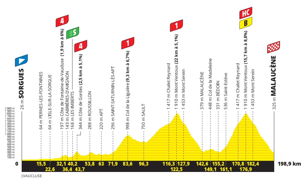 11e étape – Mercredi 7 juillet 2021 : Sorgues > Malaucène (198,9 km)